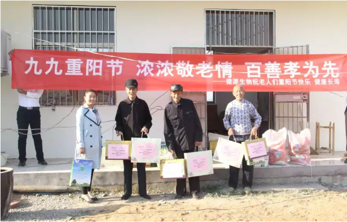 “德乃人之本,孝為德之先”,尊老、敬老、助老一直以來是中華民族的傳統美德,是社會文明進步的一個重要標志,10月17日是重陽節,也是老人們重要的節日,為弘揚中華民族尊老敬老愛老的優良傳統美德,值此重陽佳節,山東健源生物科技有限公司走進徂徠鎮土門村,看望在這里生活的39位年過80歲的老人們,特意為老人們購置了精品茶葉、毛巾禮盒三件套以及健源相關書籍等慰問品,給老人們帶來關愛和溫暖。