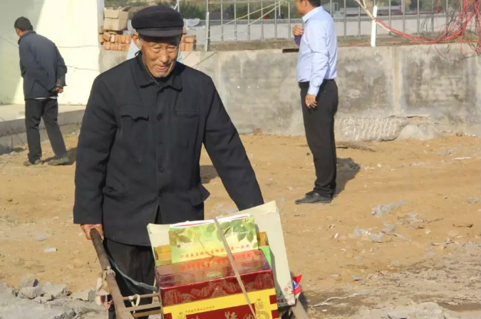 老人們已經80多歲了,自己推著車子來到村委,身體依舊不輸年輕人。