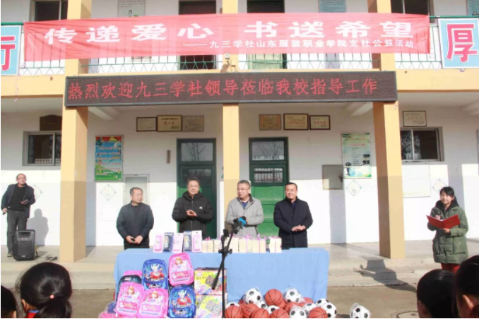 九三學社劉彥濤秘書長代表捐贈方講話,他表示孩子門是祖國的未來和希望,下一代的健康成長是社會關注的重點問題,希望孩子們能夠多讀書,豐富知識面,知識就是力量,通過知識改變命運,鼓勵孩子們要好好學習,將來有一個美好的未來,有能力去幫助他人、感恩社會,最后對學校的發展和孩子們的未來送上了祝福和期許。
