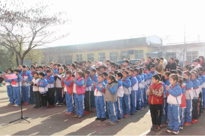 11時整,全校老師和同學們相聚在學校操場,愛心捐贈活動正式開始,出席本次捐贈活動的有:九三學社的劉彥濤秘書長、侯家華主委、泰安市化馬灣鎮教委彭主任與健源生物董事長王誠先生、總經理助理兼辦公室主任王玲女士。學校張校長對九三學社與山東健源生物科技有限公司的捐贈表示感謝,感謝九三學社以及社會各界對學校教育的關注和支持,感謝在寒冬里送來溫暖和祝福。并告誡全校師生要懂得感恩,將這份愛心傳遞下去。