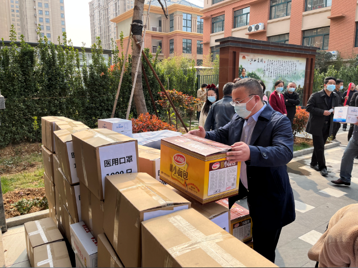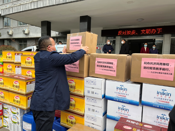 2022年4月2號上午,九三學社泰安市委會青工委集結社員,組織開展了“矢志不渝跟黨走、攜手奮進新時代——我們‘疫’起來護家”愛心捐贈活動,助力疫情防控。社員們先后來到岱岳區天平街道辦事處、粥店辦事處司家莊社區、泰山區省莊鎮東羊樓村等基層地點,看望慰問了在一線工作的防疫人員,并為他們送去醫用口罩48000只、消毒液320斤、75°酒精320斤、方便面110箱、礦泉水285箱、火腿腸、肉丸、面包等若干愛心物資,總價值五萬余元,山東健源生物科技有限公司王誠董事長作為九三學社泰安市直機關基層委員會六支社主委代表公司參與此次愛心捐贈活動。