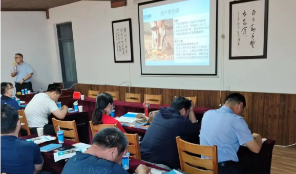 2022年5月26日—5月27日,高青縣高素質(zhì)農(nóng)民專(zhuān)項(xiàng)培訓(xùn)養(yǎng)殖技術(shù)班在淄博市高青縣召開(kāi),同期舉行山東畜牧獸醫(yī)學(xué)會(huì)反芻動(dòng)物科技委員會(huì)肉牛養(yǎng)殖技術(shù)交流會(huì)。現(xiàn)場(chǎng)行業(yè)專(zhuān)家圍繞牧場(chǎng)熱應(yīng)激管理、奶牛階段性管理(圍產(chǎn))、青貯制作流程、疫病防控等內(nèi)容進(jìn)行了生動(dòng)、細(xì)致的講解,幫助養(yǎng)殖戶(hù)更好地掌握養(yǎng)殖技術(shù)。