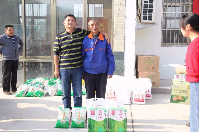 老人們在家人的陪同下陸續來到村委辦公處, 在村委于得勇書記的陪同下,詢問了老人們生活情況、身體狀況,并叮囑老人們要保重身體,天氣轉涼要注意保暖。村委書記表示,感謝健源生物對老人們的深切關懷,你們的愛心讓老人們在這里享受朝陽愉悅,老人們綻放夕陽之美。
