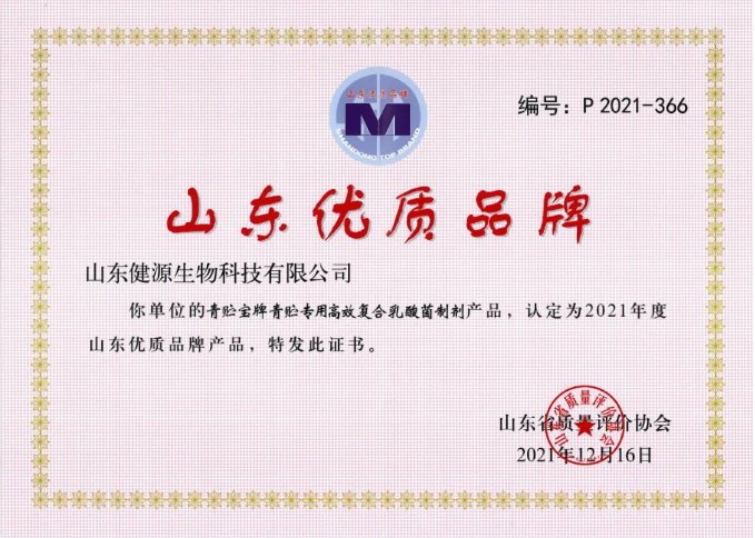 山東健源生物科技有限公司的“青貯寶牌青貯專用復合乳酸菌制劑產品”,被認定為2021年年度山東優(yōu)質品牌產品。