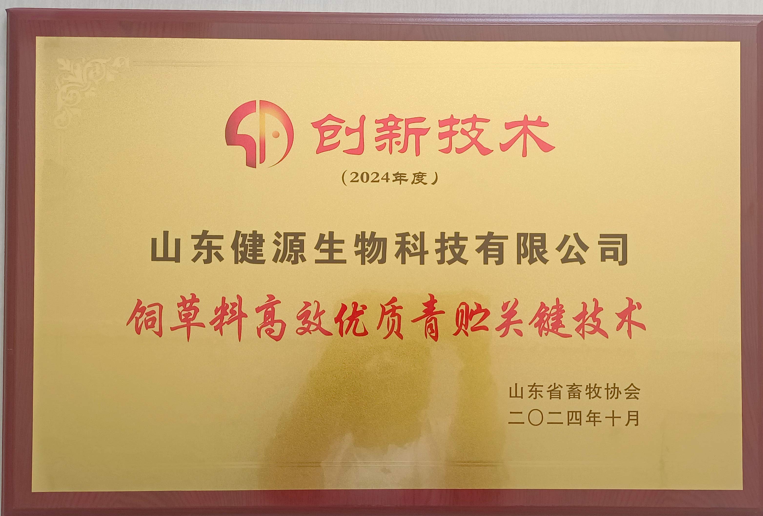 熱烈祝賀健源生物榮獲2024年度山東省畜牧協(xié)會“創(chuàng)新技術(shù)”獎(jiǎng)